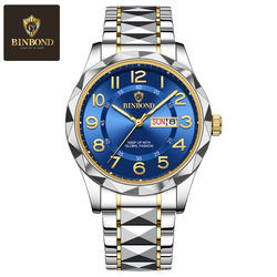 ساعة يد فاخرة جديدة من BINBOND من الفولاذ المقاوم للصدأ مقاومة للماء مضيئة للرجال وصلت حديثًا وعصرية