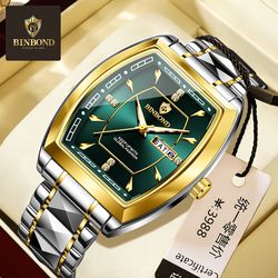 Novo Relógio de Luxo BINBOND 400 para Homens, Relógio à Prova d'Água com Caixa Tonneau, Relógio de Quartzo Masculino